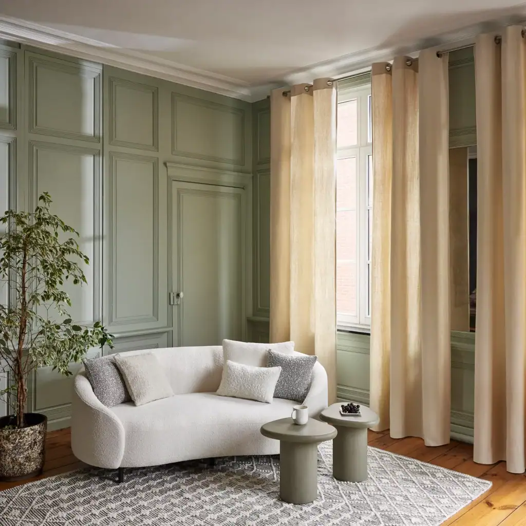 Ces rideaux peuvent parfaitement compléter une ambiance qui mise sur des couleurs fortes, comme une teinte naturelle comme le vert jungle.