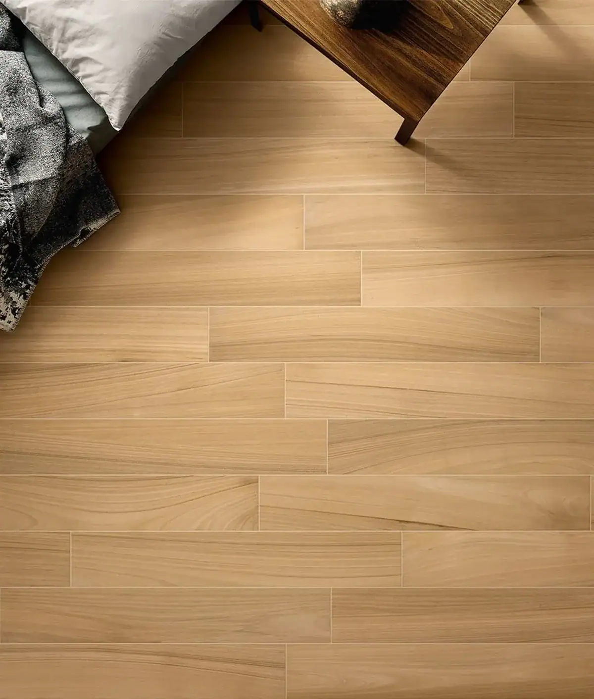 → Prix moyen : entre 25€ et 80€/m² selon la qualité et l’origine. Les collections italiennes et espagnoles dominent le haut de gamme avec des reproductions de chêne, noyer ou teck d’un réalisme saisissant.