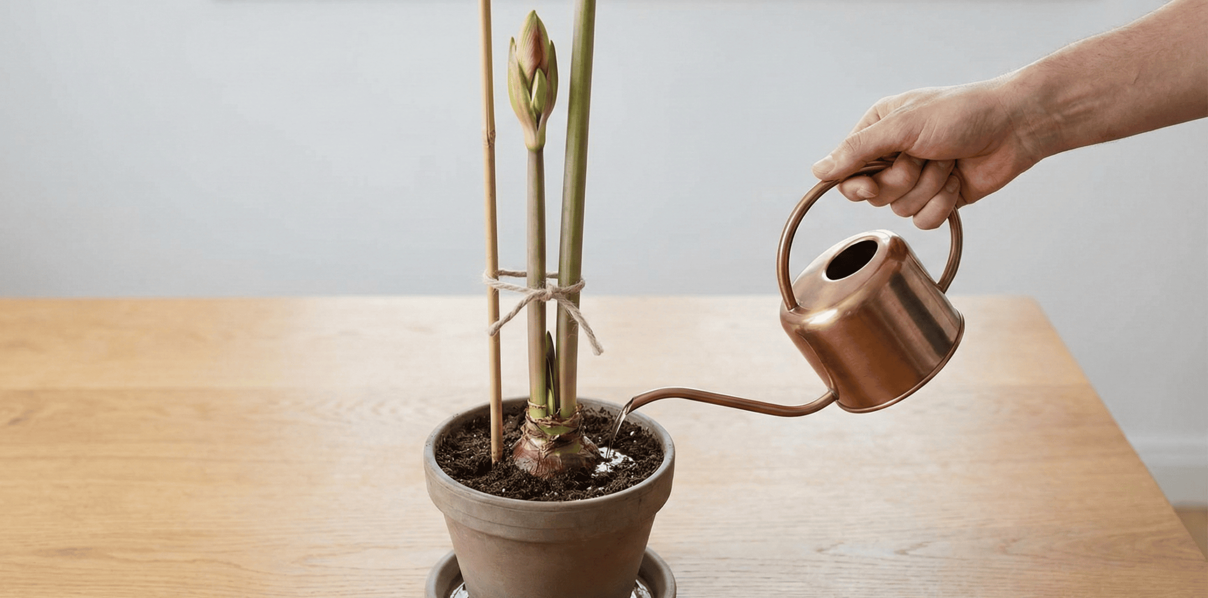 L’arrosage doit être modéré et régulier. Le sol doit rester légèrement humide, mais jamais détrempé. Trop d’eau peut entraîner la pourriture du bulbe, tandis que trop peu d’eau bloque la formation des fleurs.