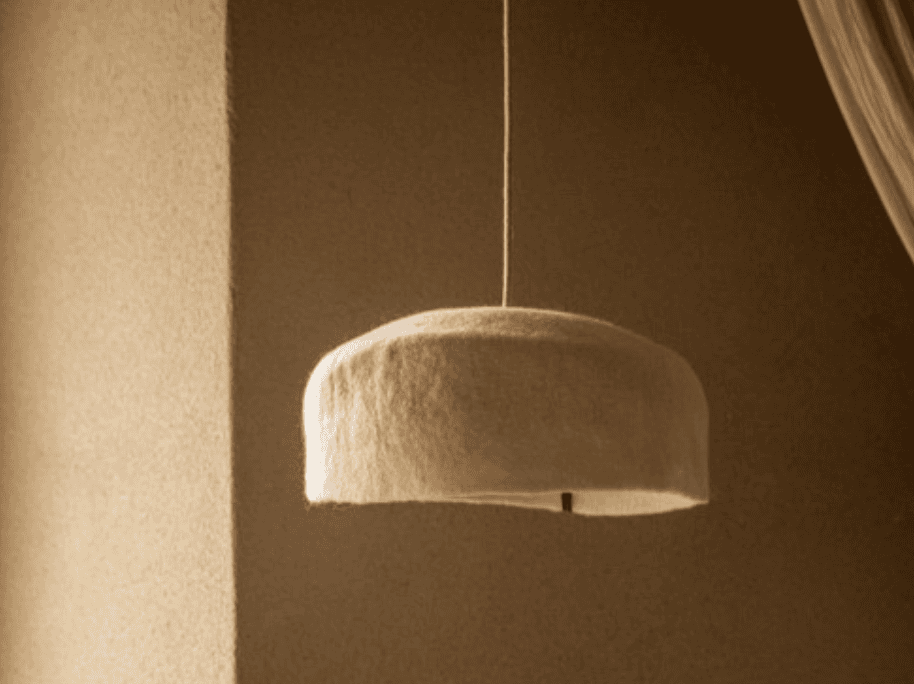 En choisissant un abat-jour pour suspension en laine feutrée, on fait entrer chez soi une matière vivante, chaleureuse, qui dialogue avec la lumière et avec les autres éléments de la décoration.