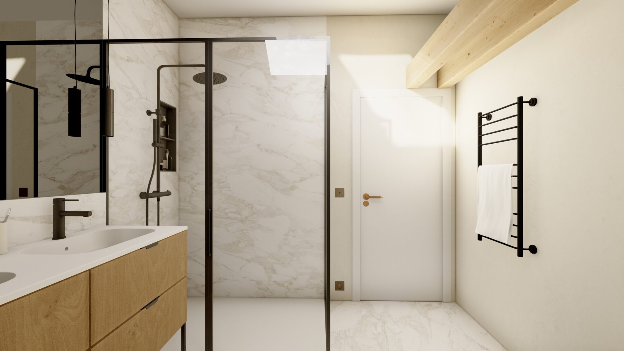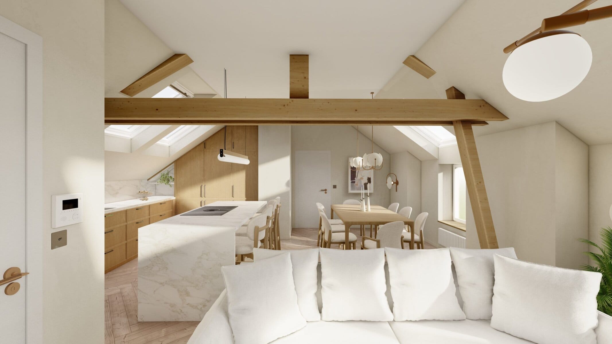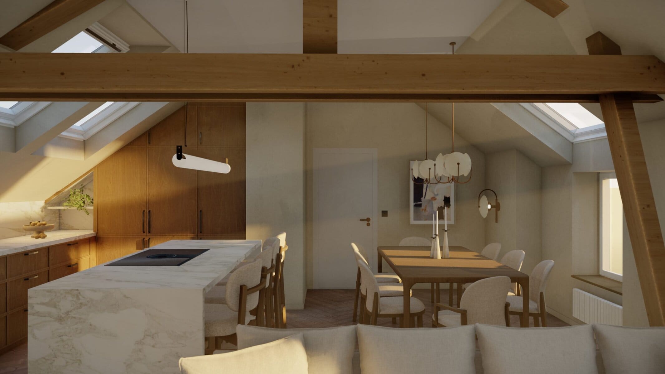 Un intérieur qui conjugue élégance et simplicité, célébrant l’art de vivre sous les toits avec justesse et sérénité.