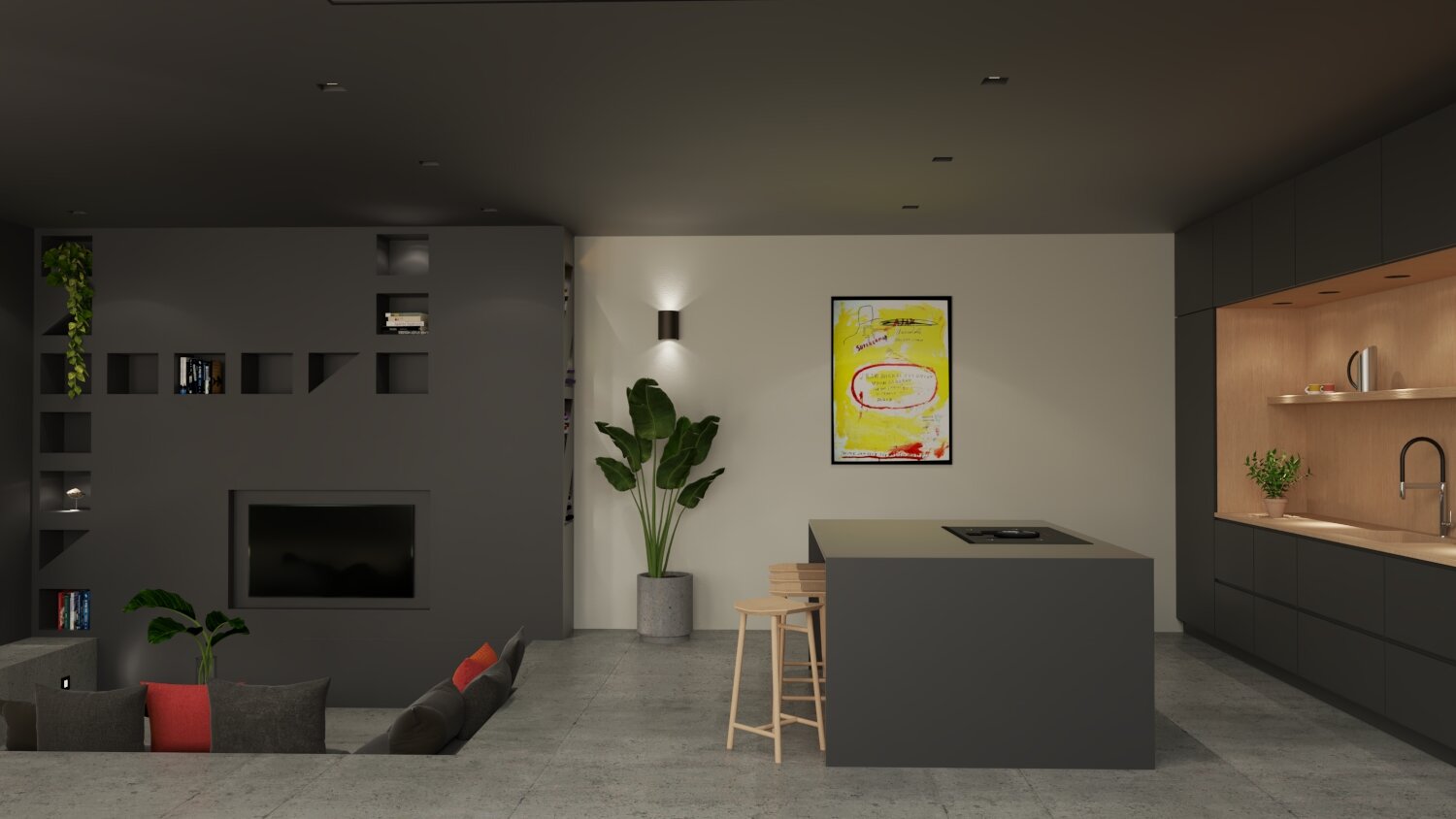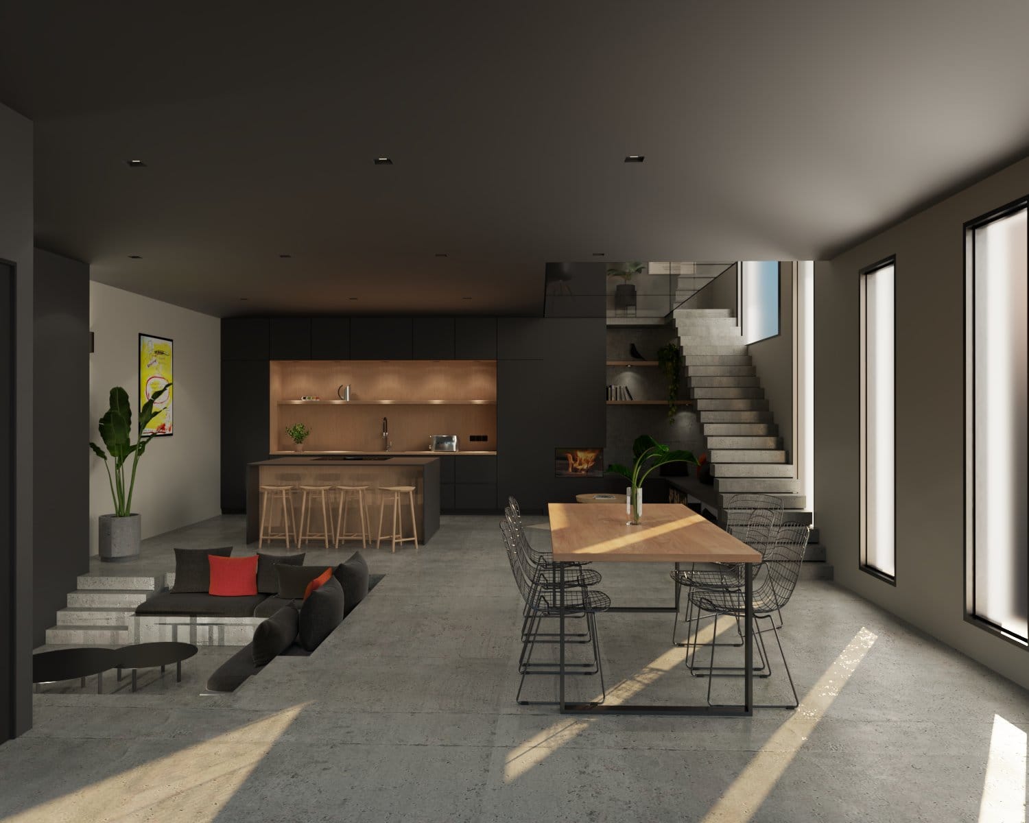 Les rendus ont été conçus comme de véritables mises en scène, mettant en valeur les atouts du loft — hauteur sous plafond, luminosité, matières brutes — tout en proposant une décoration contemporaine, élégante et cohérente. Chaque vue a été soigneusement pensée pour offrir une lecture claire des espaces et suggérer un mode de vie harmonieux.