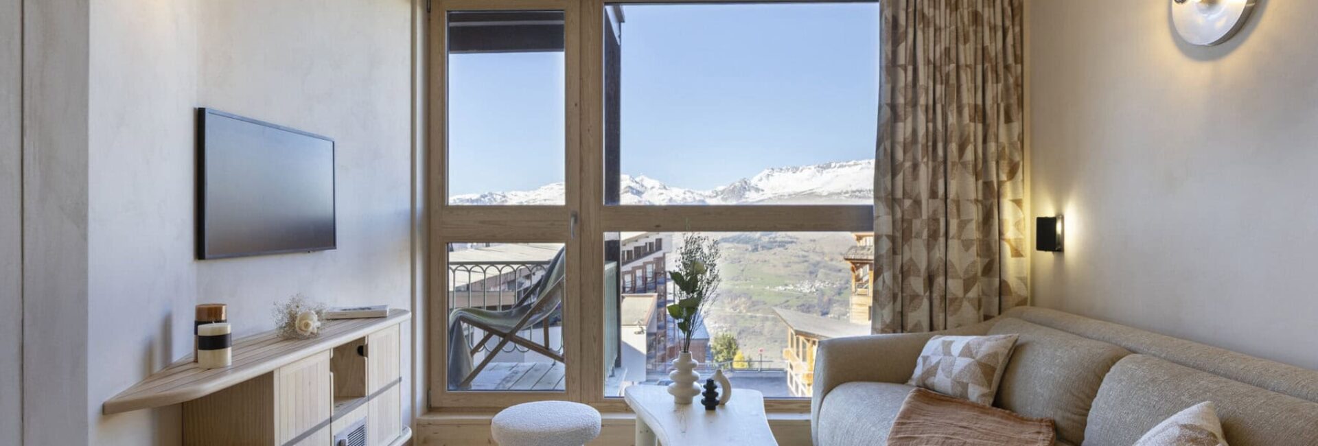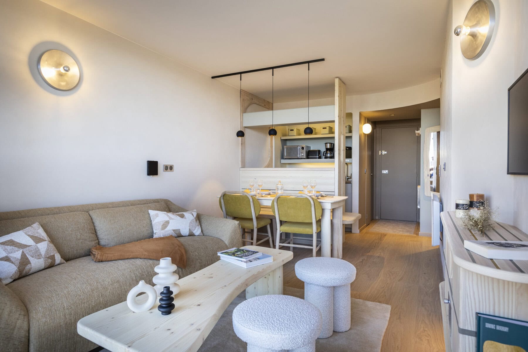 Rénovation d’un appartement des années 70-80 situé aux Arcs, station emblématique labellisée « Patrimoine architectural remarquable du XXIᵉ siècle ». Ce projet s’inscrit dans une démarche de respect et de valorisation de l’héritage architectural de la station, en rendant hommage à l’une de ses figures fondatrices majeures : l’architecte d’intérieur et designer Charlotte Perriand.
